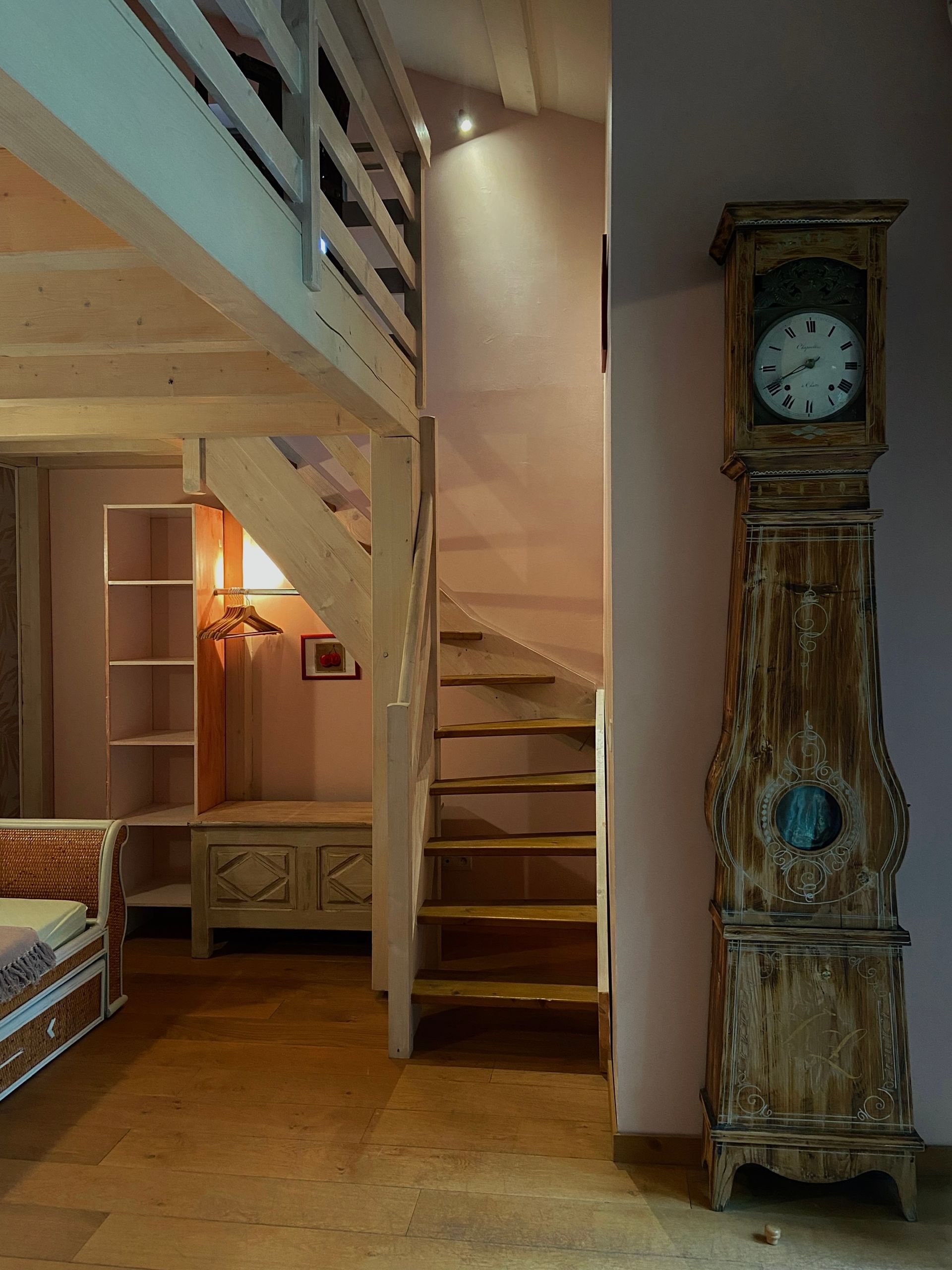 Située en partie dans l'ancien réservoir à grains, la chambre cerise et sa porte d'origine vous feront découvrir un espace avec mezzanine donnant vue sur le Vercors et le Domaine